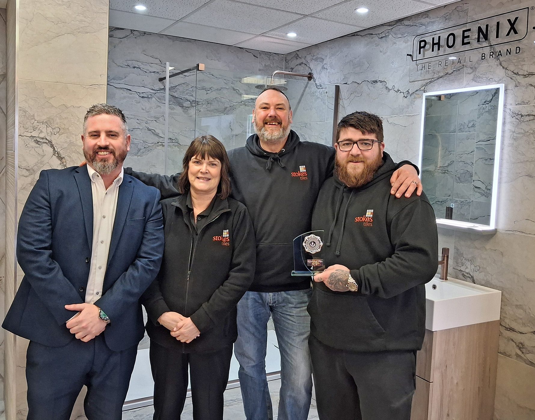 Phoenix BDM Daniel Gale presents the December Showroom of the Month award to Stokes Tiles of Sheffield, congratulations to the team!